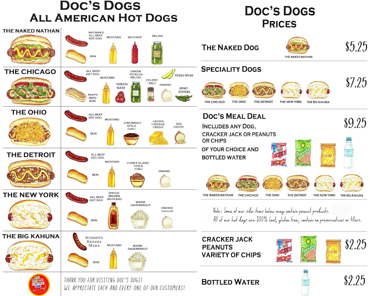 A trip to Wilmington isn’t complete without stopping by Doc's Dogs Menu, tucked away at 500 John Chambers Dr. This spot goes all-in on classic comfort, offering juicy dogs piled high with toppings that range from simple mustard and ketchup to bold chili, cheese, and crispy onions. The buns are soft and just slightly toasted, holding everything together without stealing the show, and every bite feels like the kind of meal you order once and end up craving later.